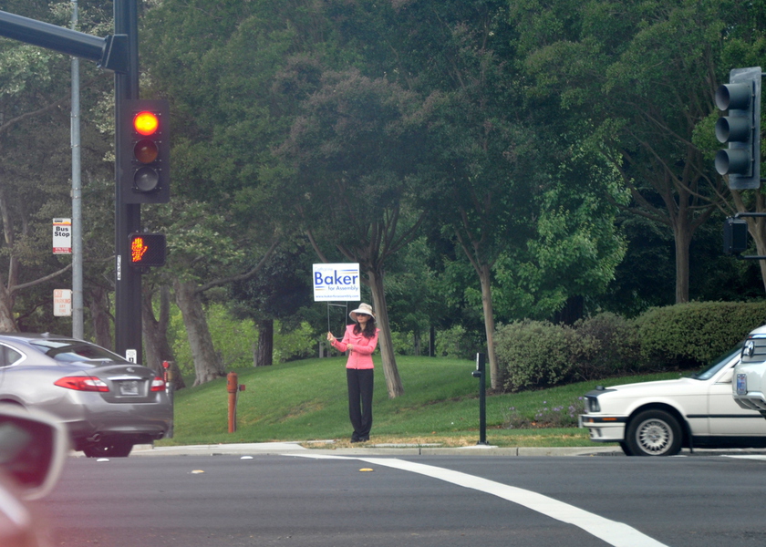 今天Nami是AD16区的大英雄,一个人盛装举着支持baker的牌子在San Ramon Bollinger canyon和Alcosta交接处的街上挥舞了1个半小时,赢来无数horn声,令人敬佩不已, 估计此举为Baker赢得不少选票和声誉.
