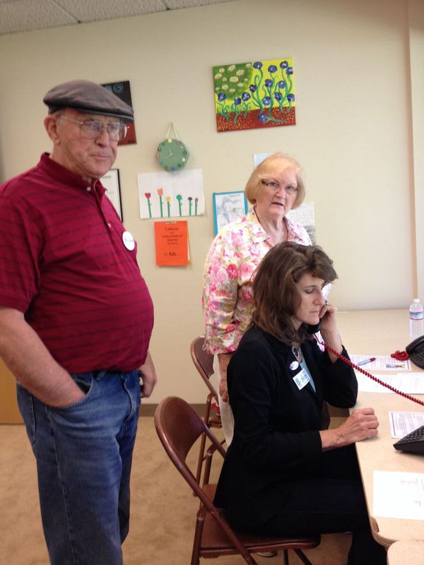 尽管今天各个投票站开放时间是7:00AM-8:00PM, Nina夫妇俩还是起了个大早, 第一个赶到家附近的投票站投了票, 先拔头筹, 并合影留念, 以纪念这一历史时刻. 小潘也和其他一些义工一样, 早早奔赴各个投票站(Polling Station)做义工. Lisha Kang夫妇不但投了票, 还动员孩子去投票. 飞达学院的许多老师在老板周先生的带头下也投了票. Ivy Liu成功说服一位不愿投票的朋友,并拉着她投了票. Baker, Baker的父母,姚建, Shell Wu 和Charles Wang等义工仍坚持phone banking, 给尽可能多的选民打电话, 争取每一张选票.
