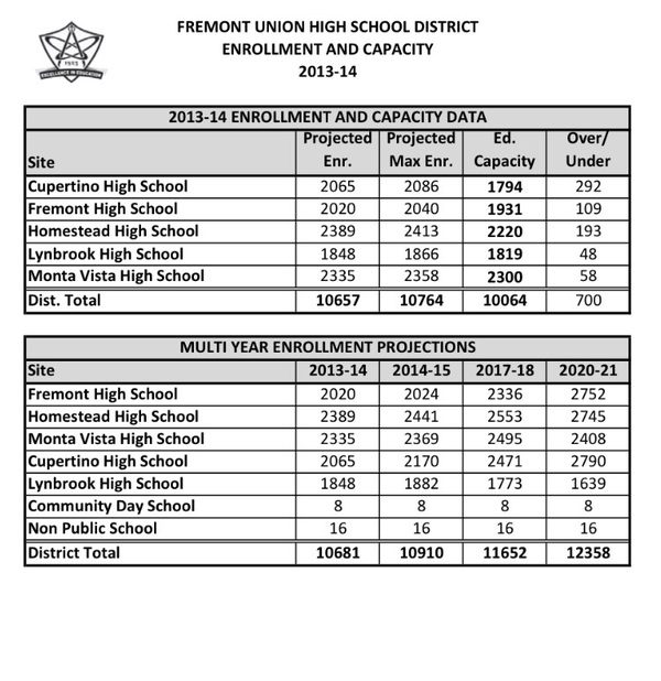 当学区不希望Lynbrook High接受Prospect High一部分学生并入的,他们的人口预测报告是这么做的:FUHSD未来的人口将越来越多。而校舍扩大空间却几乎没有,因而不出几年,FUHSD就会超员严重。所以当时学区的结论是,Lynbrook High绝对不能接受其他学区的学生。