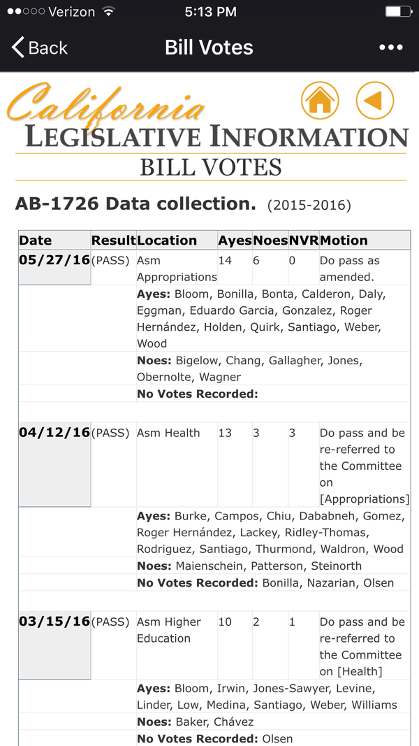 我为啥和民主党过不去呀?因为AB1726是民主党提出的partisan Bill. 而加州此次(5/27/2016)拨款委员会的决定是民主党全数支持,共和党全数反对,可惜寡不敌众。