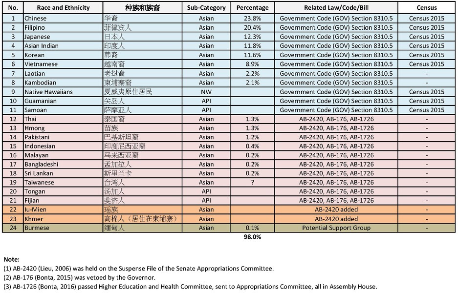 周四(6/2/2016)亚裔细分法AB1726将在众议院表决