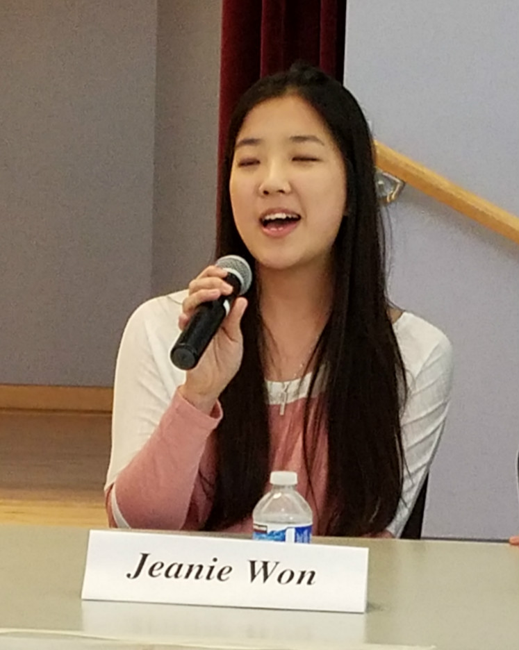 本次后动在San Ramon 社区中心举办,5位高中毕业生首先进行了自我介绍。Larry 最喜欢的学校活动是演讲与辩论, Quiz bowl等;最喜欢的学科是数学及英文;业余时间喜欢烹调,阅读及旅行。Edward同样喜欢演讲与辩论, 业余时间喜欢阅读,骑自行车,还参加了很多的义工活动。Larry及Edward两人曾在全国演讲与辩论比赛中多次获得大奖。才女Effie喜欢打网球,同时在绘画艺术,音乐,写作等方面也有很大的兴趣和较高的造诣。Michael喜欢音乐及计算机科学。Jeanie喜欢数学及音乐, 高中期间在乐队,美国红十字协会及义工方面花了很多时间及精力。