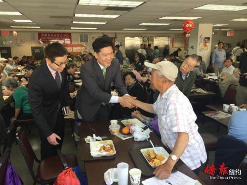 在美华协会(OCA)前任会长郑向元(Jerry Cheng)陪同下,郑胜振展示了他在皇后区为老年人服务的长期承诺。郑呼吁州参议院第16区的亚裔美国人社区,通过支持会为他们代言发声的参选人的方式,进入到州参议院平台,更好的参加政治改革。