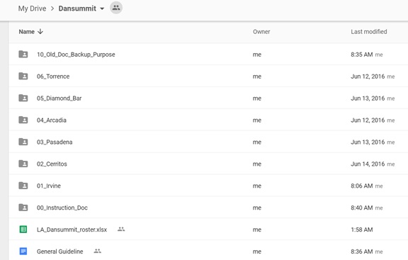 Next you can work the Google sheet in a folder for your area, e.g. “01_Irvine”