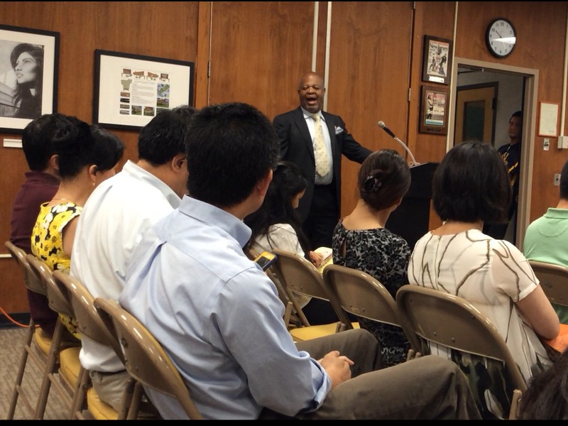 听听下面音频里一位非裔居民有力又幽默的讲话。他说自己的孩子搬过来前也是学中文,但这个镇一直没有。我们晚开了整整十七年!全场长时间鼓掌。