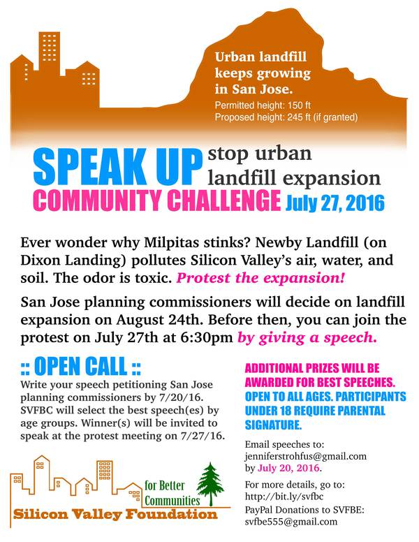 SVFBC is calling a “No Urban Landfill Expansion Speech Competition” and a