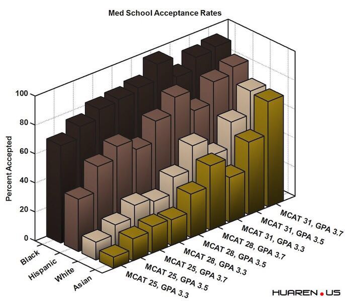 转载一篇美国华人之声的文章片段,具体请您自己看链接,现在"华裔孩子通往大学学府的道路越来越艰难。 很多品学兼优的华裔孩子都无法如愿以偿地进入心仪的学校,甚至连进州立大学都成为难题。 而其他少数族裔的却可以轻而易举地得到数个常青藤大学的录取信。 在大学录取过程中, 黑人学生在大学录取时相当于得到了310分的加分, 西裔学生得到130分的加分, 而同作为少数族裔的亚裔,却得到了140分的扣分。 可能有人说 SAT不是大学唯一考虑因素, 但是这也是唯一一个可以横向对比的参照体系了。” 看懂了么,相对于白人,我们要高出140分才算平等,相对于黑人,我们要高出450分,西裔270分。而SAT满分1600,这是个什么概念,咱们理工男理工女这么多,不用我再唠叨下去了对吧?