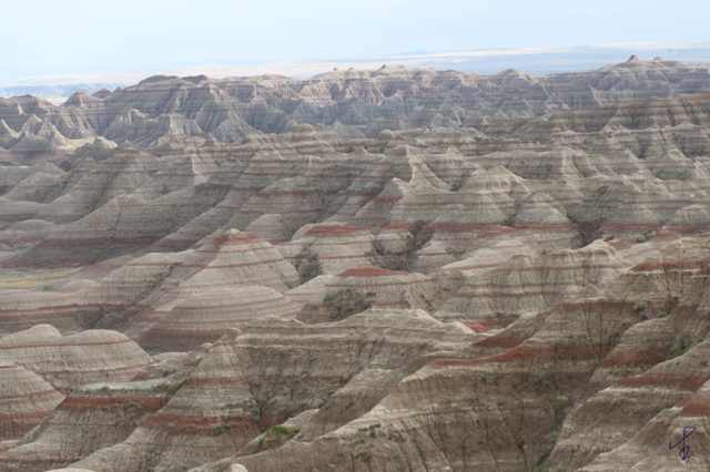 它们像一座座城堡,安扎在这块大平原上。数百万年大自然的风化侵蚀,造就了这片诡怪奇丽。这片土地,在当年为了寻求生活的法国殖民者看来是难以想象的糟糕,于是他们称之为恶地,殊不知,在崇拜大自然的印第安人眼里,这些杰作都充满了不可侵犯的灵魂。你的恶地,我的圣土。