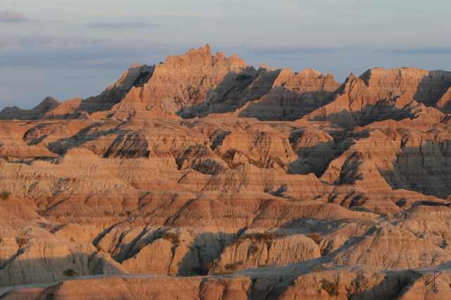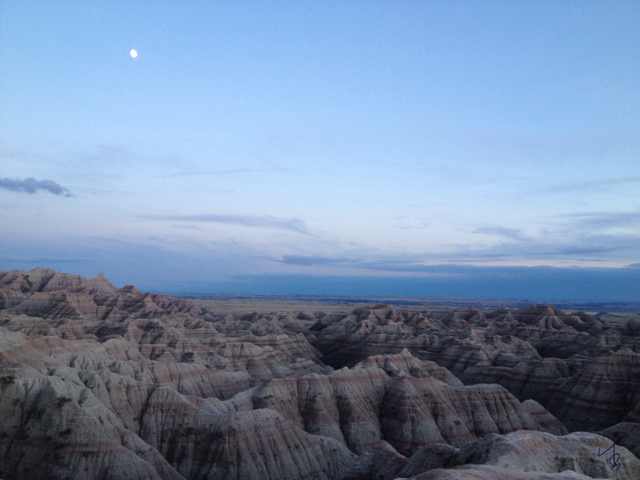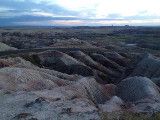 把图片给朋友看时,很多朋友误以为这是科罗拉多大峡谷。在不经意间闯入这里之前,怎么想到会有如此的壮观景色深藏在中部大平原里呢?一路走走停停,没想到竟到了晚上七点多,在夜色降临之后,不得不匆匆离去。而夜色中,在一个停车场里,依然还有一位欧洲来的朋友,披着厚厚的衣服,在三脚架前忙碌着,准备在那里通宵拍摄景色的变化。看到他,你可能不敢再说自己有多么地热爱大自然了吧。