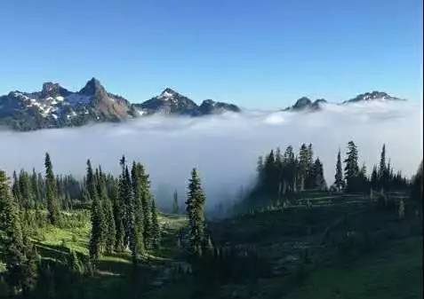 白雪覆盖的Rainier 如圣洁沉静的少女,溪流潺潺是她轻柔的脉博,葱郁松林是她起舞的衣裙,烂漫野山花是她生命的述说。