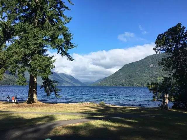 Olympic national park 没有Banff 的壮伟,没有Yellowstone 的奇妙,没有Grand Canyon 的震撼,没有Bryce Canyon的华丽。可是他是英俊,太平洋是他威武的披风,隆隆海涛是他低沉的歌,Hurricane Ridge 连绵山脉是他的脊背,Sol Duc Hot Spring 是他沸腾的热血,寂静空旷山谷是他的胸怀,rain forest tails 是他浪漫的情怀,Lake Crescent 是他含情脉脉的明眸,仿佛注视着轻云薄雾蒙面的Rainier。周日的早晨,在湖边,一群基督徒依山傍水唱赞美诗,敬拜创造天地的主。我还目睹了一对年青人爱情的表白。平静山水伴随着和平的歌声,见证着人类最美好情感。