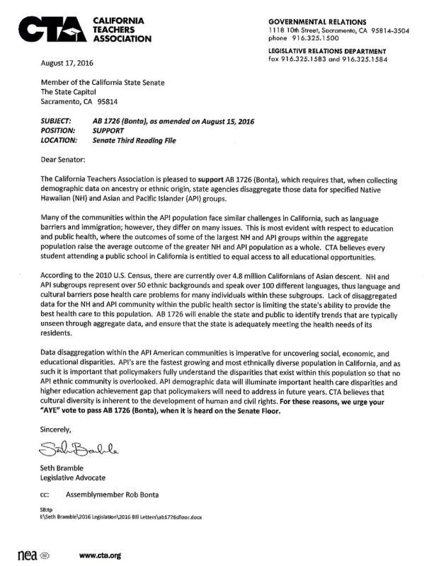 Bonta等一众民主党死性不改,被全美华裔/亚裔不断全方位轰炸,结果背后大怪CTA终于给逼出来发公函了。事实再一次说明,AB1726是加州民主党及其背后工会势力一直都想推的歧视/分裂亚裔法案。福兮祸兮暂不论,先给我们奋斗了将近半年的所有义工/金主们一个大大的赞!CTA支持的,大家基本可以闭着眼反对了!