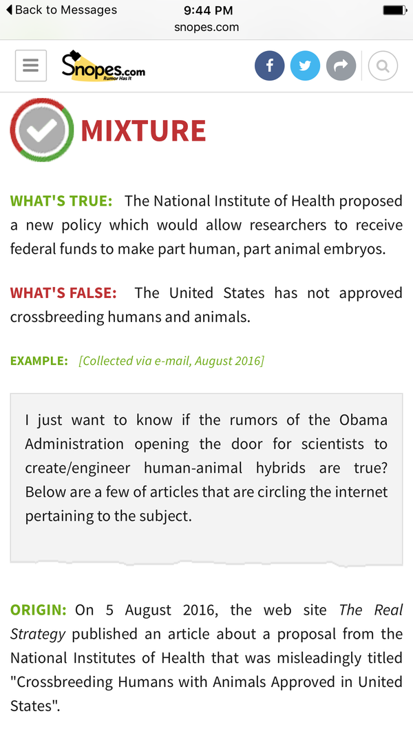 http://www.snopes.com/crossbreeding-humans-with-animals-approved-in-the-united-states/