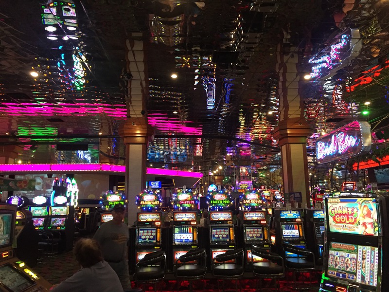 在旅馆入住后,老公要去办事。旅店的旁边就是赌场,来到赌城怎能不去赌一把呢。我对老公说:“我一个中年妇女,一个人眼睛直勾勾地走进赌场,可能会招来保安的”。结果还没走到赌场,就碰到一位保安,我告诉他我是第一次来,他友好地把我领进赌场,还给我介绍餐厅和睹桌。赌场人不多,老虎机旁一些老年人在玩,一直没有听见那悦耳的硬币落下声。我在一张二十一点的桌子旁停下来,因为我只会玩这个游戏。进来前我和老公说我只玩这些钱,输光了我就走。老公说那你就不是人了,你不把带的钱都输光你是不会出来的。这是人性使然,输的想捞本,赢的想再赢。能控制住自己不是容易的事。