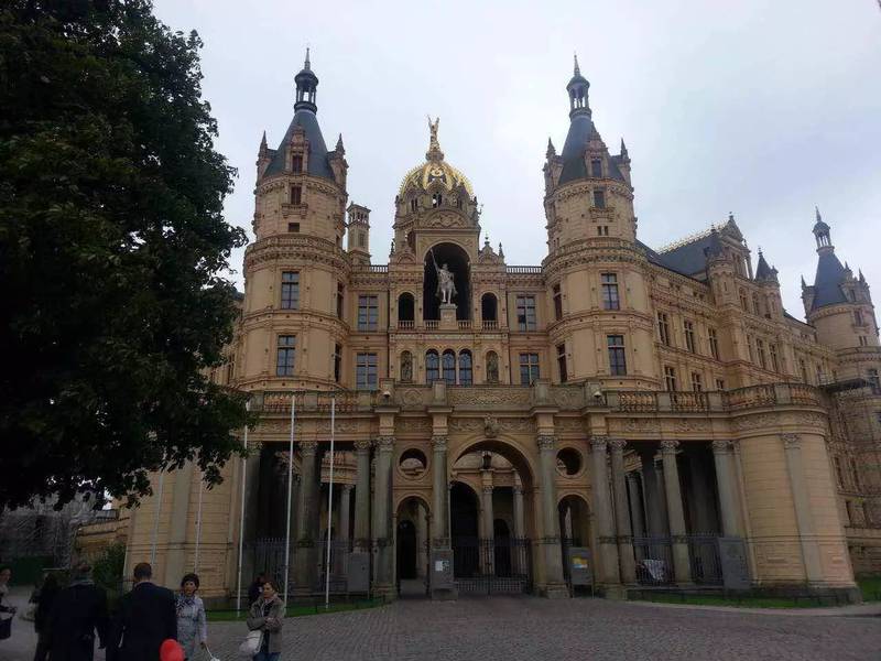 回程的路上,我们绕去一个叫Schwerin的小镇,这里最出名的景点是Schwerin Castle,也叫Schwerin Palace。它建在水的中央,一个很气派的建筑。它现在的用途是个展览馆,里面有小型的瓷器、兵器展。