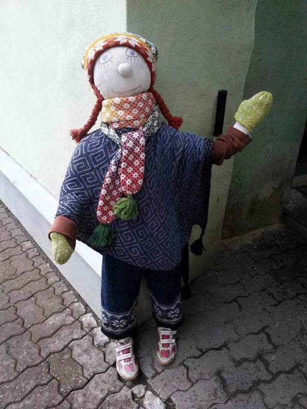 这个毛线织的女孩差不多和真人一般高矮,每个卖毛线织品的商店都会摆放一个在门口,招揽生意,蛮特别的。
