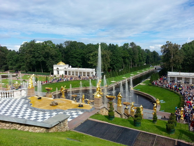 地铁出来后,旅游车把我们送去码头坐船. 一个多小时的river cruise把我们带到Peterhoff Palace, 也就是彼得夏宫,它是由十数座宫殿组成,花园有超过六十座喷泉和两百多尊金色雕像,是世界最美丽的夏宫。