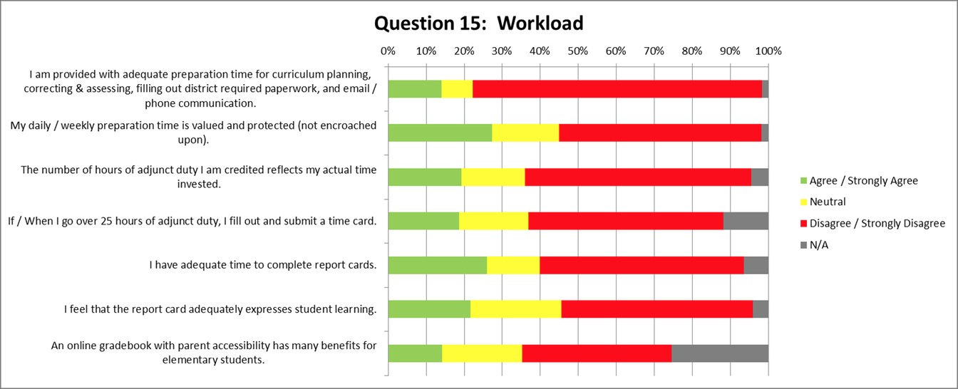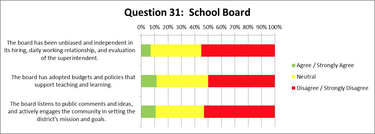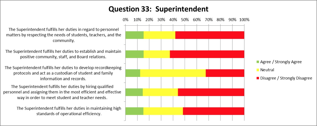 教师对学监Wendy Gudalewicz和学区委员的好评都不足15%,差评几乎都超过50%。
