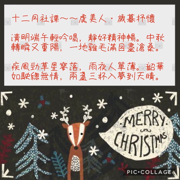 微信發文利器WeiDBcom,點這裡開始!👉👉虞美人·歲暮抒懷 🌟吟詩作對 🌟随笔感悟 🌟人生点滴 🌟摄影天地 Anna-101370 12/09 63475 4.0/1 虞美人·歲暮抒懷清明端午輕吟唱,靜好精神暢。中秋轉瞬又重陽,一地雞毛滿目盡滄桑。疾風勁草星寥落,雨夜人單薄。韶華如駛總無情,兩盞三杯入夢到天晴。 微信發文利器WeiDBcom,點這裡開始!👉👉 http://www.weidb.co/p558438 获取作者更多文章 上一页 下一页 1. 【海绵人✳️微云影视剧】剧情构思素材记录💠初稿花絮✨讨论解析(27234) 2. 《芳菲岁月》- 二月冰梦 | 武昌起疫(99294) 3. 《抗击武汉疫情募捐倡议书》 ~美國長安聯誼會(48610) 4. 虞美人·歲暮抒懷(63475) 5. 詩集《邂逅詩歌》(39995) 6. 五律二首(41030) 7. 南瀛三月社課(28045) 8. 肥哥之友•富贵病(58630) 9. 如果没有万圣节😱(65040) 10. 肥哥天地•MIT银桶(60499) 11. 二十九封書信及後續篇(35839) 12. 文革中北大清华的死亡事件(13328) 13. 肥哥天地•Dr. Vera Rubin(21848) 14. FIT36(36分钟高效健身)-- 不一样的健身经历(26027) 15. 7 things emotionally intelligent people avoid(20850) 16. Difference in decision making and competence(17332) 17. Trump,农妇,蛇(27629) 18. 眾志拳拳 愛心暖人間(26686) 19. From Good To Great(17687) 20. 【寡 言 的 父 亲】——献给所有农民工的留守父亲(作者:老茂)(24022) 21. 太极点滴(35622) 22. 🌸♬《芙蓉雨》(17869) 23. @《当你老了》(14712) 24. 汪浩:寻人启事(译)(35634) 25. 汪浩:威斯敏之静谧 - 圣詹姆士公园游记(36532) 26. To Elle - My Puppy Friend(28075) 27. Second Sunday of May(30990) 28. 英子读诗【四月女人】(24011) 29. 湿瓷绘《一啄一声响》俳句连歌(18289) 30. 【农民工-远行 】/【农民工-苦楚】 (作者:齐速)(24926) 31. 北美华人医师联盟(ANACP)讲座通知(33475) 32. 春天的早晨(20205) 33. 【我 的 文 盲 母 亲】——献给所有农民工的留守父母亲(作者:老茂)(20675) 34. 人的一生,注定要经历很多(13417) 35. 【生活组诗:吃 喝 拉 撒】(作者:齐速)(17615) 36. 【生活组诗:刷 牙 洗 脸】(作者:齐速)(24056) 37. 【远方的家远方的你】(作者:齐速)(24819) 38. 轻沉兼备(16505) 39. 〈诗艺之星—诗词插画大赛〉: 获奖作品专辑即将出炉!(31049) 40. 〈诗艺之星—诗词插画大赛〉: 评审的祝贺语: 张伟民(26904) 41. 〈诗艺之星—诗词插画大赛〉: 评审的祝贺语: 朱立立(29872) 42. 〈诗艺之星—诗词插画大赛〉: 评审的祝贺语: 海云(29330) 43. 达哥:清明忆外婆(22233) 44. 肥哥之友•背影(19212) 45. 關於新書(18616) 46. 有感落英(18027) 47. 川普 · 言论自由 · 领导能力(29424) 48. 【我 有 一 壶 酒(1)】(编辑:齐速)(17400) 49. 肥哥天地•才女无数(17978) 50. 肥哥之友•飚诗三月(17491) 上一页 下一页