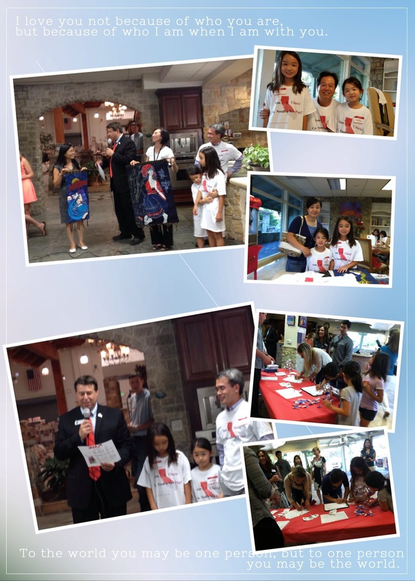 At the party, Chuck Page brought his home made red wines which are very popular. I brought some Chinese cloth paintings that did not sell very well. Ma Yong and his wife Yanan Yang brought Chuck Page campaign T-shirts which almost sold out. Every one at the party were impressed by those two lovely girls wearing a small size T-shirt that was still too big for them running among people to sell the T-shirts.