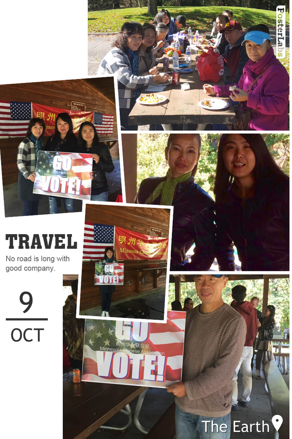 昨天上午,明州华人在布鲁明顿市西布什湖公园(West bush lake park,Bloomington),举行了明州有史以来的首次美国大选华人助选集会。分析今年大选形势,鼓励华人选民参与大选,积极投票,发出我们华裔应有的声音。