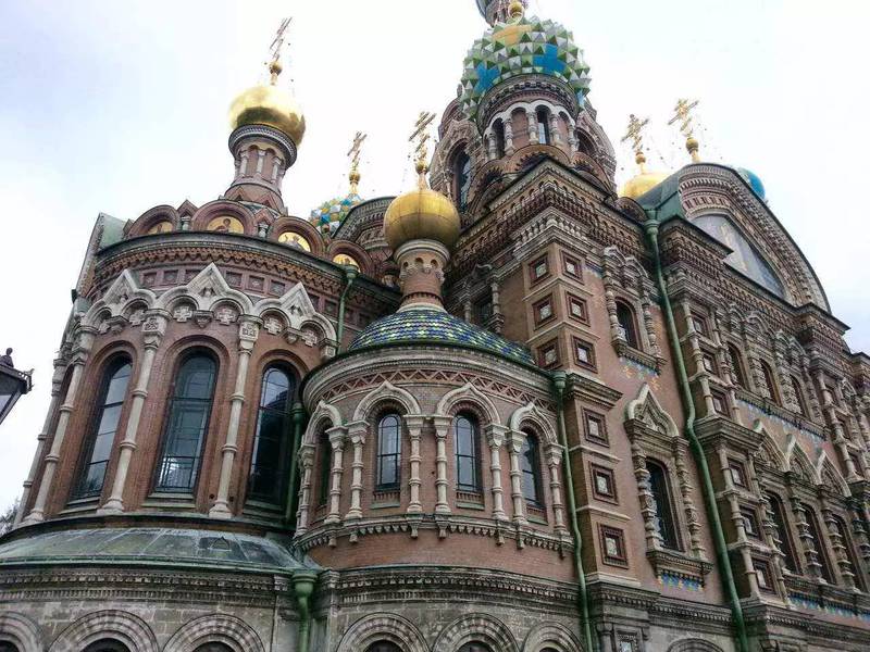 圣彼得堡还有两座十分宏伟、气派的教堂。一个是Church of the Savior on Blood, 中文名叫复活教堂或滴血教堂,是因沙皇亚历山大在此被革命分子暗杀而得名的。教堂内用了7000平方米的马赛克来装饰,图案非常逼真细腻。