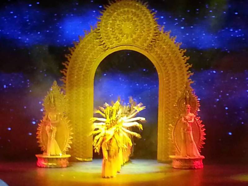 晚上,我们有幸观赏了西湖之夜大型歌舞表演。上演的节目有经典的千手观音等, 服装是一如既往的色彩鲜艳,音乐更是热闹喜庆。