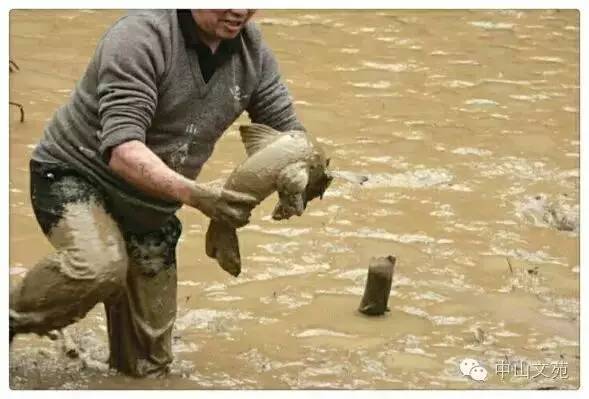你知道吗?那时候村民们的生活都很穷,能吃上鱼和肉己经是很奢侈、幸福的事了。个个脸上笑开了花!你们瞧瞧,热心的阿远,满身服装上、脸上都是泥巴,但是心是乐滋滋的,笑出无比的幸福,这些鱼就是村民们的年货之一了。