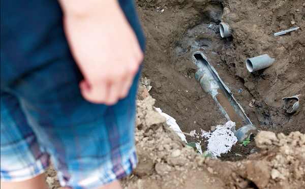 刚刚被挖出来的地方,还留着被切割的管道,塑料材质,管壁大约1厘米厚度。从孩子所处的位置来看,是先被吸住了脚,一直向管道里移动,被吸了大约两三米的距离后,一个向上的管道挂住了刚刚的脚,刚刚就永远地停留在了这个位置。