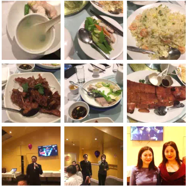 年底的某星期六晚,亚裔选民协会的歌舞群组织了当年第三次K趴(呵呵,我们爱玩的声誉不是吹的)。这次寻遍三藩市不同的K房,发现新德群酒家,除了楼下筵开四十席,二楼的贵宾厅、兼K房、兼新娘房,宽大流畅,不设最低消费。其音响超佳,众歌手听起来都呵气如兰,全部自动晋级为歌王歌后。当晚三名经理级别的靓仔哥哥在美女老板(不是老板娘哦)的带领下,来与我们这四十多号人见过(这么好的招呼!),并由他们拍版点菜。可惜小伙伴们不太厚道,在相机吃饱前先抢攻下筷,许多图片的份量都不对了。