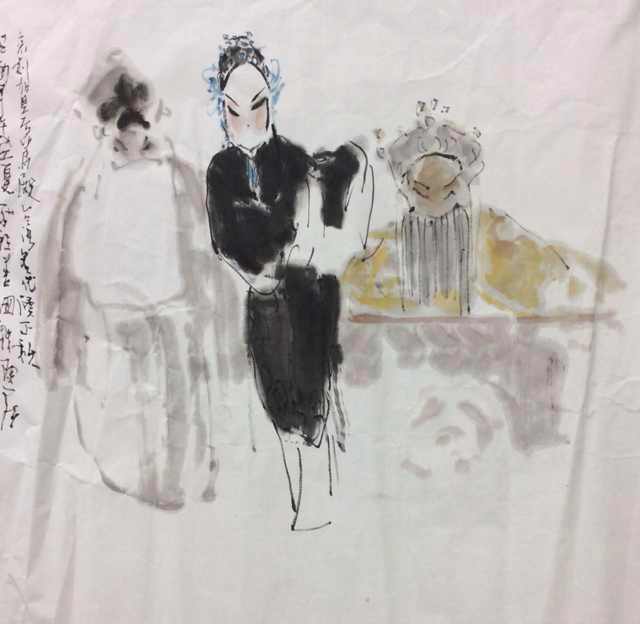 落叶归根,这是一支正宗血脉的京剧之臣,许多都是富连成班子当家的角儿。但是,我们学习,看戏,写戏的年代他们的名姓听都没有听过。寻找他们,认识他们,描绘他们是我义不容辞的工作,我已经默默无闻地打听,查阅,小样大半年了,这个时候不断感觉到一个又一个大角儿“走了”,还有一些也是风烛残年,一旦失去了人们不再记起了,而这些千锤百炼,精雕细琢,别无仅有的藝術精神就会消失在历史的长河里。凡人仕卒,悠天下之忧。不肖“唱戏”一顾。而我的老优名伶们成我之全。一下午他们从各地邮来十多条剧目、剧照王能兴先生电话里头报戏名,还转告我:于先生安排我去台湾展览。我感谢。其实,这个“台湾京剧(平剧)画展览已经有约。我不声张是我看周边已无“出将”已无“入相”。