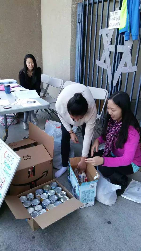 她们的活动得到了CACC理事会和学生家长们的大力支持,理事会赞助了许多CACC T-Shirt等作为回赠给捐助者的礼品,并送来热气腾腾的咖啡和早点,许多人捐出了干净整洁的衣服和各种罐装食品,还有一些人捐出现金等。