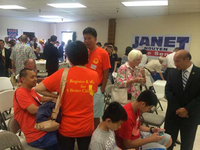 加州参议院共和党领袖 Bob Huff 的夫人何美湄女士出席。TOC义工与学生义工及家长与Mrs. Huff 及 Janet Nguyen 面对面问答互动并合影。TOC义工现场摄影录像,