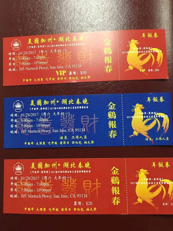 乡亲们,朋友们,2017新年即将到来,由我们“海外湖北联谊会”主办以及多个友好社团协办的的大年初一夜(2017/1/28)大型春节联欢晚会给大家发福利来啦。来自湖北艺术代表团以及湾区本地的著名艺术团体将携手同行,一起为大家准备一餐丰盛的新年艺术盛宴。为配合这些专业水准的演出,我们不惜花大价钱租了音响和视觉效果都有口碑的场所。有吃有喝(年饭)有玩,专业的唱歌跳舞旗袍秀帅锅美女当红节目应有尽有,还有红包和抽奖!最最重要的是,社团特价票只需要$10!这个价格纯粹赔本赚吆喝,只能靠我们筹备团队四处乞讨拉赞助补窟窿。俺们的口号是:不怕亏,就怕亏的不够废;俺们越亏,大家肯定越哈皮。