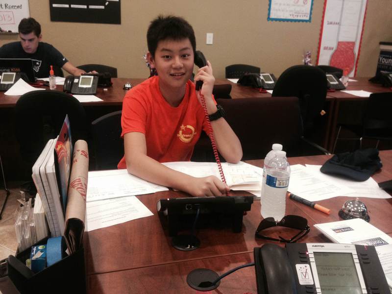 Mark Meng,13岁,来自中国大陆。他阳光;好学;有理想。抱定求学和接受美国教育的理想来到了美国加州。当他与爸爸妈妈落户在Orange County的Irvine市准备开始新的学习生活时,周围已经来到加州有一段时间的华人们的一些有关“华人接受教育的权利正在受到某些民主党人的改变,并有可能演变成种族歧视的方向”的讨论引起了他的思考。“我和爸爸妈妈辛辛苦苦搬来加州就是希望能在一个更加公平,民主的环境下生活学习。如果按照目前民主党人的这样的作为,我们岂不是白来了”,Mark说到。“那我可以做些什么才能有可能改变这些呢?” Mark由思考转变成探求如何采取行动了!这个飞跃可是可喜!“积极参与重点选区的助选活动!”TOC (The Orange Club) member的提醒激发了Mark的行动热情。于是….