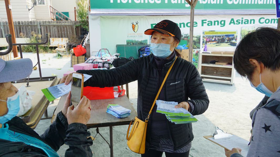 Date: Friday 8/28/2020 Location: Florence Fang Asian Community Garden at Diana St. SF CA, 94124. There were a total of 21 attendees. Hazel Lee was the main speaker. Singtao reporter David Huang documented the event by taking photos and speaking. Speeches were delivered in Cantonese. The event was held at a local community garden, the attendees were all seniors that lived in the neighborhood and gardened every weekend. The topics touched upon that day were voting participation encouragement and voting registration. Voting material was distributed.