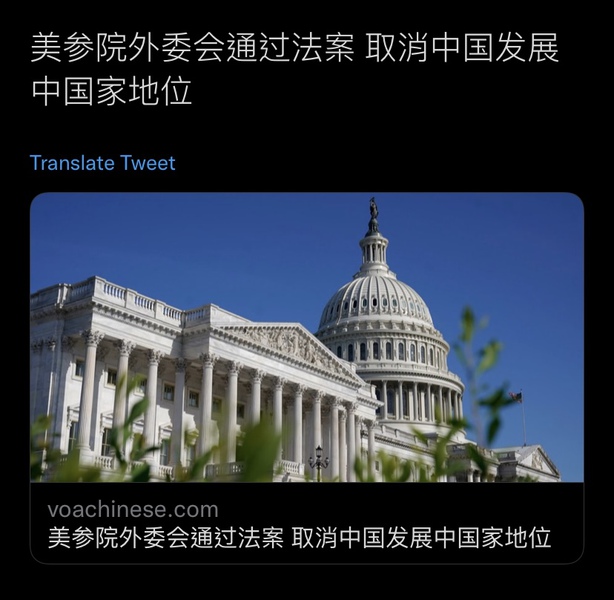 美参院外委会一致通过:“取消中国发展中国家地位”法案