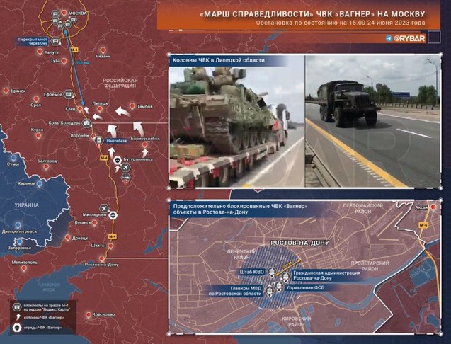 “瓦格纳武装集团抗命反叛” 俄军精锐部队已经在乌克兰战场折损了大半,能参战的俄陆军部队目前95%以上陷身于乌克兰战场,以2.5万武装到牙齿且身经百战的瓦格纳精锐,分散在俄罗斯广大国土上的20多万近卫军,完全不是他们的对手。 俄军如果决定从乌克兰战场撤回部分精锐部队驰援莫斯科,从乌克兰顿巴斯地区回撤的道路,已经被瓦格纳武装完全封死;如果从赫尔松-克里米亚回撤,一来乌军正在扎波罗热大反攻,部队回撤必遭乌军一路重炮轰击,二来绕路上千公里,必然远水难救近火。因此,一周内克里姆林宫极可能被瓦格纳攻陷,俄罗斯政权将落入普里戈津手中。历史将如何发展,千年巨变是否开始,就看此次俄罗斯内乱!