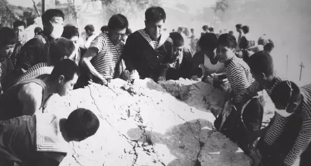 海軍救援部隊的三千名官兵快速到達災區現場,這是建國以來遭受的最嚴重災難,沒有經驗,戰士極度缺乏搶救用的工具器材,只用雙手、鐵鏟、撬棒等原始工具,除此之外,就是在現場用高音喇叭不停地朗讀語錄「下定決心,不怕犠牲,排除萬難,去爭取勝利!」鼓舞士氣,艱難困苦悲壯慘烈可想而知,在搶救過程中,余震持續發生,唐山連續發生的多次五六級餘震中,造成海軍救援部隊大量官兵傷亡或傷重損失,讓人悲痛。