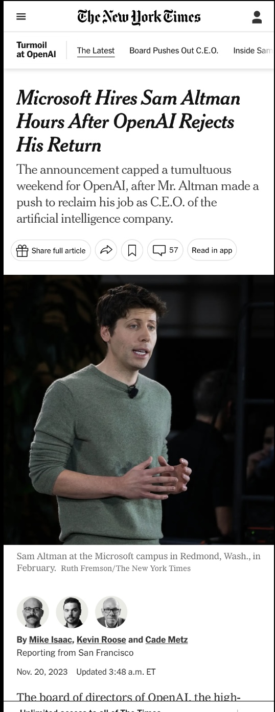 消息一經公佈,OpenAi 馬上受到投資人的壓力,要求回聘山姆繼續領導公司…。