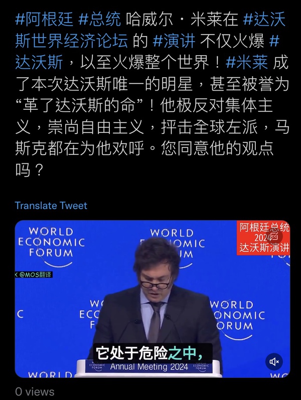 阿根廷总统米莱,在达沃斯论坛演讲中譯版全文