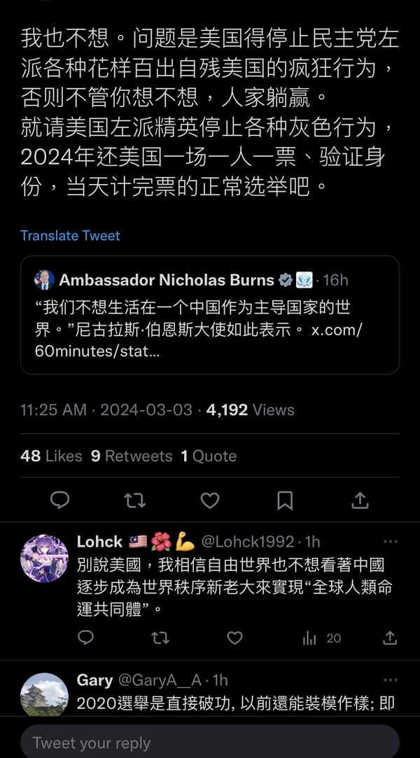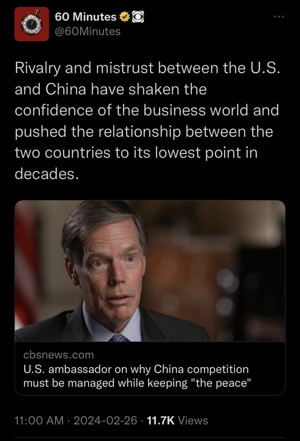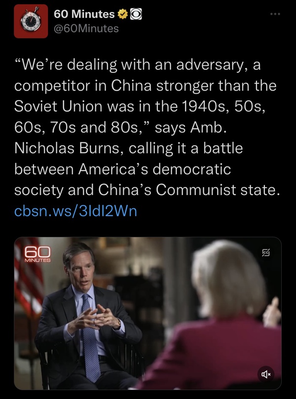 請注意‼️據此可以明確推判:「中美必有一戰!」。伯恩斯大使點出了中美爭斗不可調和與避免的實質。
