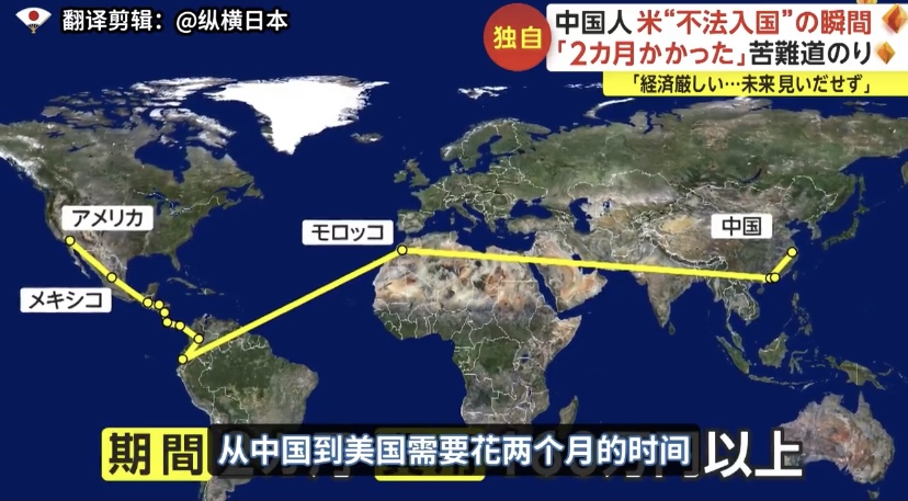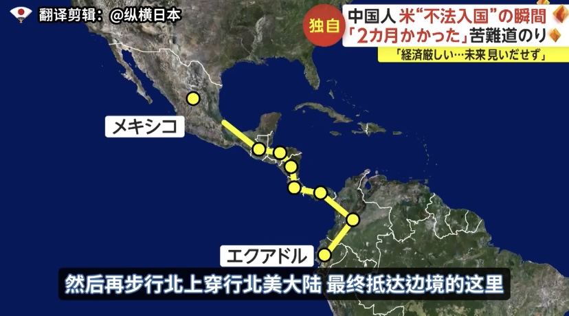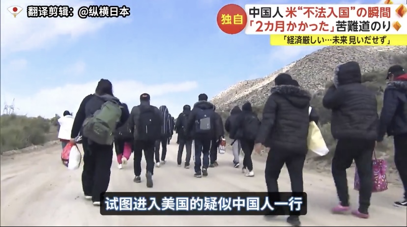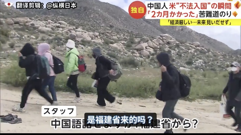 在美国和墨西哥的边境,日本记者发现了一队中国走线者的身影