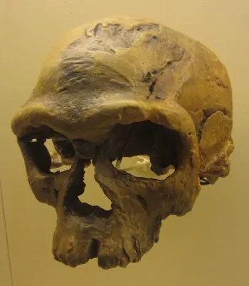图 2: 来自摩洛哥杰贝尔 · 伊尔霍德(Jebel Irhoud)的伊尔霍德1号智人头盖骨铸型 , 陈列在华盛顿特区史密森尼国家自然历史博物馆。它最近被重新定年,从之前的约 16 万年调整为 31.5 万年。