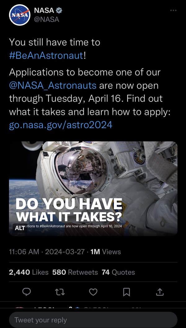 ~要求申请志愿者应该对独特、有益的冒险有强烈的渴望,并有兴趣为美国宇航局的工作做出贡献,为人类第一次火星之旅做准备。