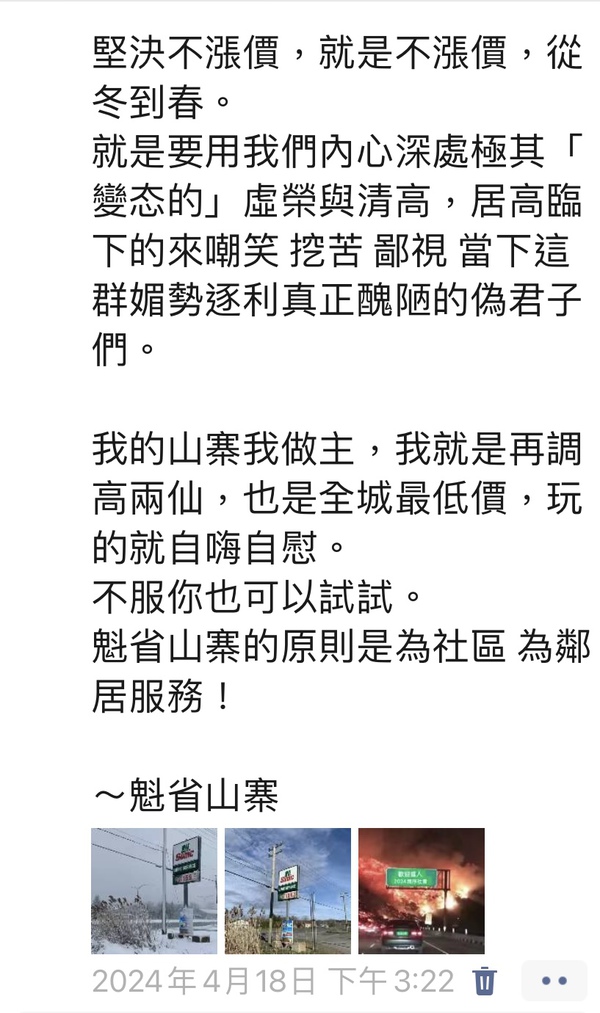 我的山寨我做主,我就是再調高兩仙,也是全城最低價,玩的就自嗨自慰。