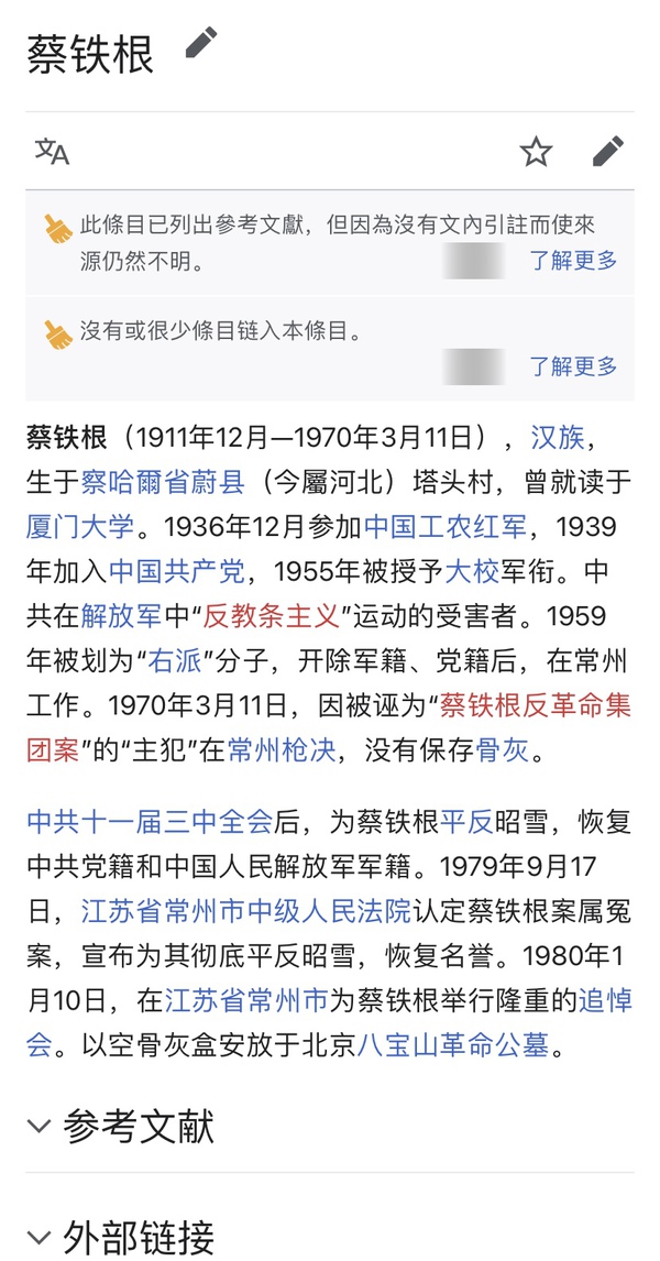 【作者的话】 这篇文章是在1998年8月起至12月的《中华儿女》上连载发表的。我觉得有必要做一点说明,文章并不像《中华儿女》编者在文前说的那样是我主动写的,而事实是因为我看见一些杂志书籍上关于我父亲的文章写的与事实有许多出入,有一本杂志甚至说我父亲是为彭德怀而死,而《中华儿女》在若干年前也在其他文章中提到我的父亲这件奇冤,于是我在1996年给《中华儿女》写了封信作了些说明,当时《中华儿女》的总编扬筱怀同志即约我写这篇文章,说实话,对于我父亲的冤案,我自己也深知尚有许多禁区,有些我是知道的,有些我至今也还不清楚,所以当时是扬筱怀同志一再动员的热情使我动笔写了,前后大约十多天。在写的时候,我自己确实是已经尽量注意了那些众所周知的避讳,但是即使这样,在经过有关部门审阅时,还是遇到了麻烦,军事科学院战史部负责审查者认为:“文章的基调比较低沉。作者以亲身感受比较详细地叙述了蔡铁根及其子女在“文化大革命”中的不幸遭遇,批评了毛主席、党中央的“错误”,基调消极,不符合弘扬主旋律,催人奋进的时代要求,况且也有损于党的形象,不利于党的团结和统一。”