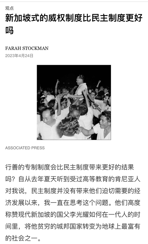 新加坡式的威权制度比民主制度更好吗?|纽约时报最新专栏文章(魁省山寨推荐)