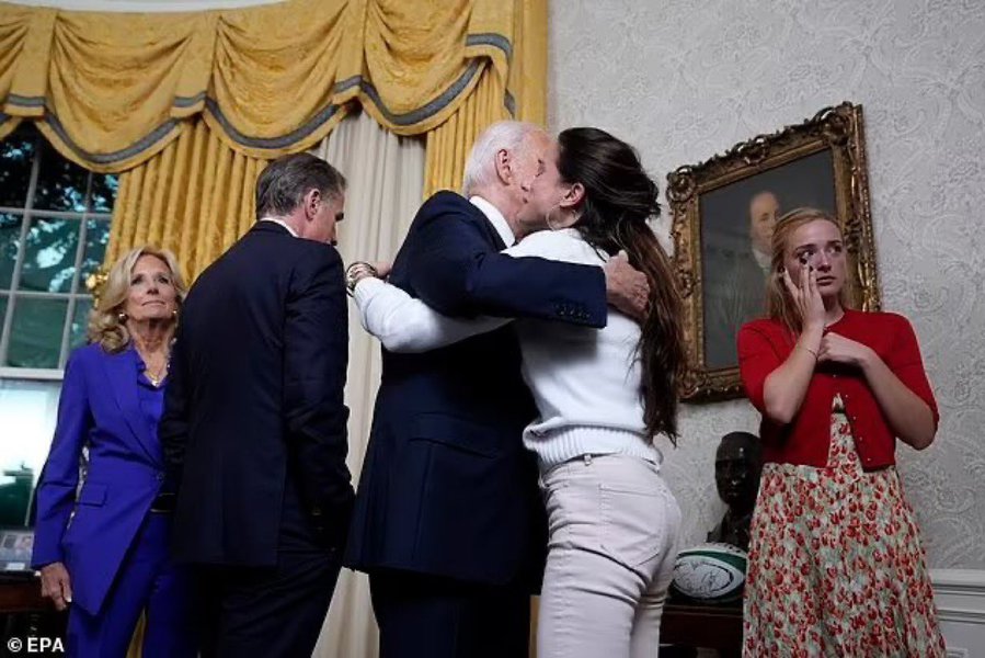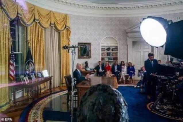 而真實的現實是拜登退選,是在25号修正案的法律架構下的必然選擇。在拜登发表电视讲话宣布退選后,白宮椭圆形办公室中,弥漫的绝望,伤心和恐惧的氛圍,笼罩著拜登一家。當然,這是拜登總統政治生涯中最艱難的時刻,更是拜登一家最痛苦的時刻,全家陷入巨大的不确定性的政治前景不明之中,沒有哭泣的声音,只有旡言悲伤的眼泪,夫人吉尔决绝的表情,小兒子侧身而立,整個人陷入沉思,完全和当下环境气氛脱离的畫面。