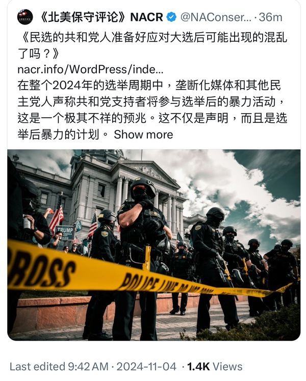 「非法移民」鋼鐵俠馬老板最後時刻的「煽風點火」搖旗吶喊! 美國已經處於不是你死就是我活的狀態之中,倆黨准備好了應對選後的狀態了嗎? [疑問][呲牙][發怒][骷髏頭] 個人估計花旗國選後一定會出現扯犢子現象,這篇文章有一定的洞察力: 《民选的共和党人准备好应对大选后可能出现的混乱了吗?》 nacr.info/WordPress/inde… 在整个2024年的选举周期中,垄断化媒体和其他民主党人声称共和党支持者将参与选举后的暴力活动,这是一个极其不祥的预兆。这不仅是声明,而且是选举后暴力的计划。 正如“穆尔西诉拜登案”的诉讼和记者马特·泰比获得的公开记录所揭示的那样,网络结构和信息安全局(CISA)实际上是一个干预选举的机构。 参议员兰德·保罗在一封公开信中说,在佐治亚这个长期面临选举挑战的摇摆州举行的 “网络安全” 活动计划包括“由网络结构和信息安全局工作人员领导,由美国军方主办的四小时‘关键基础设施桌面会议’”。在全国各地的选举暴力培训中,网络结构和信息安全局“提供了各种场景的桌面练习,包括抗议演变为暴力,投票站出现活跃的枪手,甚至在选举办公室发现隐蔽的极端分子” 据《今日美国》报道,联邦调查局还与全国的选举官员一起参加了类似的演习,其中包括为“公民不服从”做准备。演习包括国民警卫队和其他军事人员 “将武器转向他们的同志”,增加 “伤亡”,并部署美国军队对抗美国平民。 民主党人已经公开表明,他们已经做好充分准备,让选举后的所有局面都对自己有利,包括部署街头暴徒和美国军队。如果共和党人没有准备好应对这些对我们共和国所剩余的财富的生存威胁,那么他们占据公职的意义何在? ~𣁽省山寨